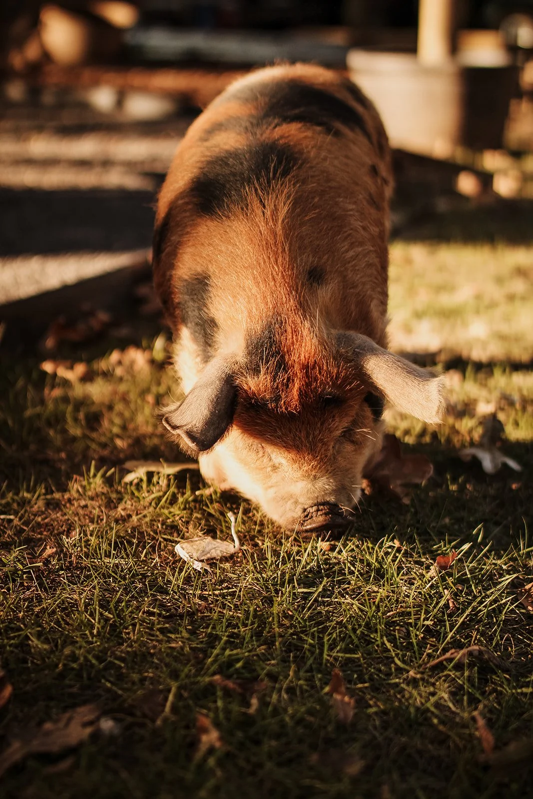 Say hello to our big, lazy pig — the ultimate nap-time champion! He’d rather snooze in the sunshine than do just about anything else, but don’t let his laid-back vibes fool you… he LOVES belly rubs and snacks. Basically, he’s the farm’s professional chill expert, and he’s more than happy to share his snuggly, snoozy charm with everyone who visits.