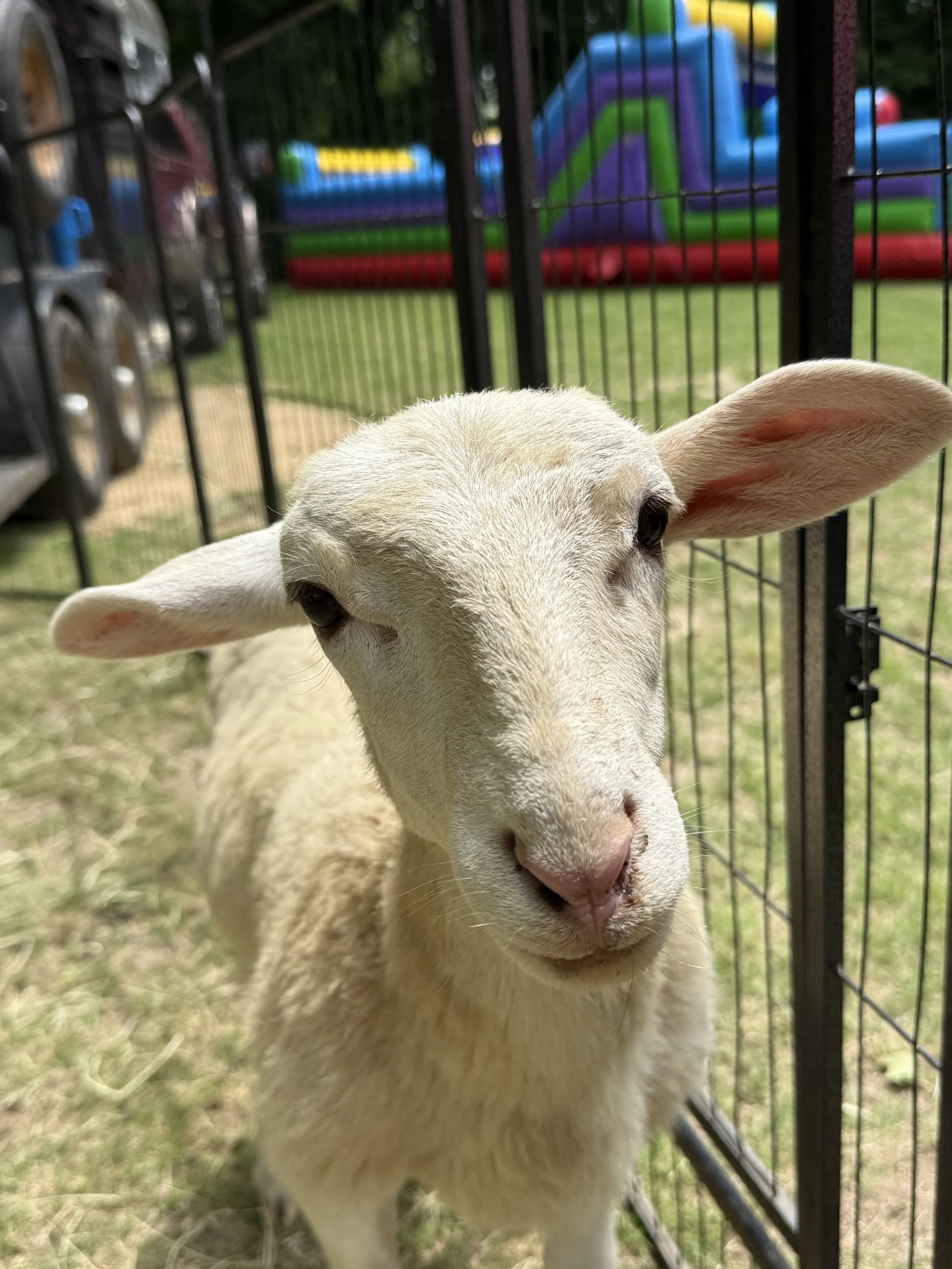 Meet our little miracle lamb! This sweet guy had a rough start in life, but with lots of love and care, we were able to save him — and now he’s thriving! Gentle, cuddly, and full of personality, he’s living proof that every life is worth fighting for. He adores scratches, snuggles, and being the star of our traveling petting farm.